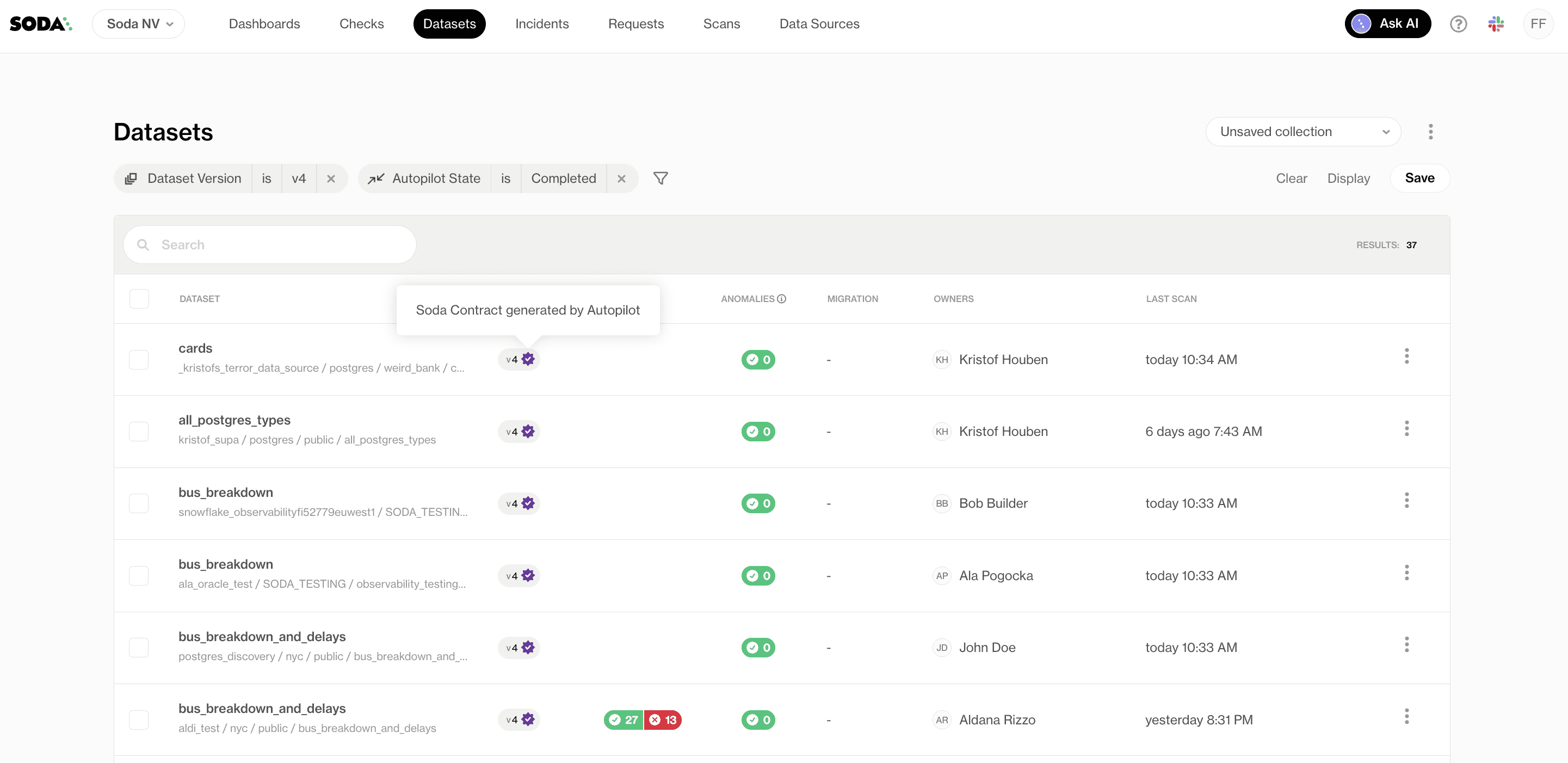 Contract Autopilot is a Soda AI feature that automatically generates data contracts for your datasets by analyzing your actual production data.