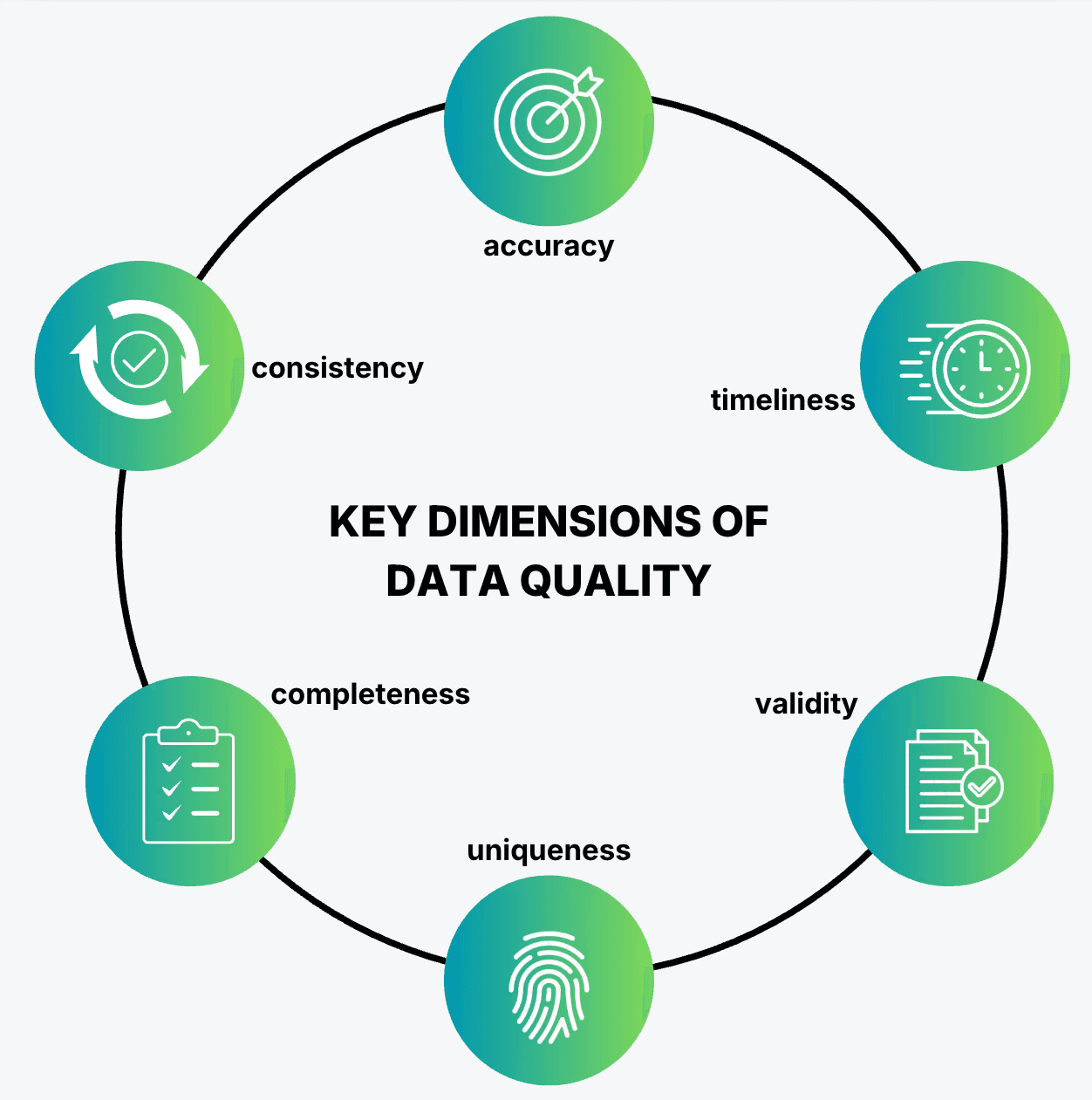 Data quality measures how well a dataset meets the expectations of the systems and decisions that depend on it. It's evaluated across six core dimensions: accuracy, completeness, consistency, timeliness, uniqueness and validity. High-quality data supports confident decisions and reliable pipelines. Low-quality data produces unreliable reports, failed pipelines, and flawed model outputs.