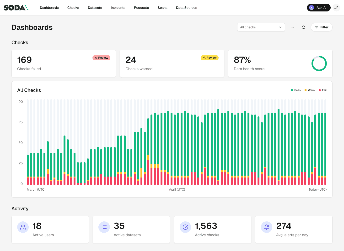 At the end of the day, we don’t want to be in there managing the checks, updating the checks, adding the checks. We just want to go and observe what’s happening, and that’s what Soda is enabling right now.