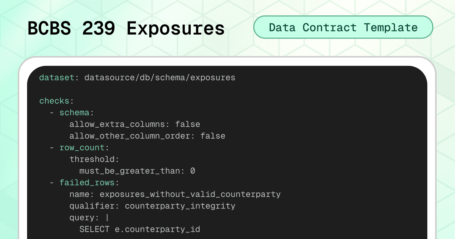 In short, for finance, where data errors can trigger regulatory penalties, misstated risk positions, or failed client obligations, enforceable contracts transform reactive firefighting into predictable operations.